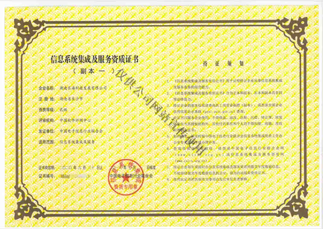 信息系統(tǒng)集成及服務(wù)資質(zhì)證書