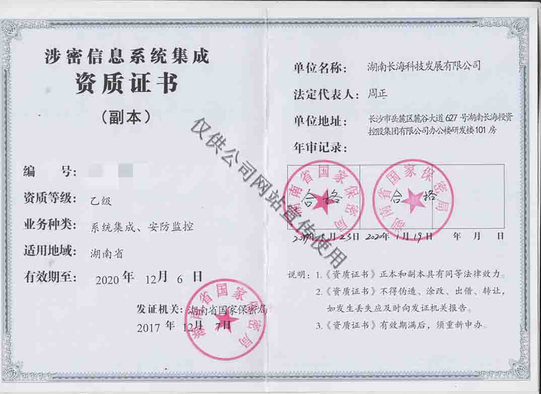 涉密信息系統(tǒng)集成資質(zhì)證書